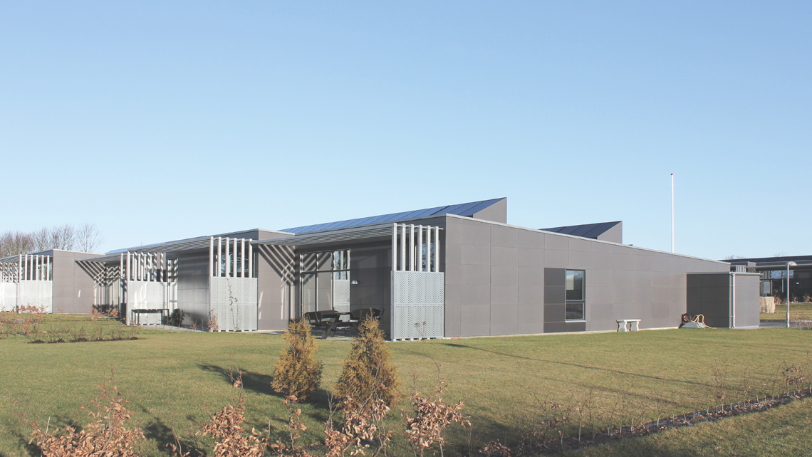 Blæsenborgparken is a project with low energy houses centred on a modest construction with gardens and views of the surrounding nature. With respect for the landscape the architecture discreetly grows from the ground and inclines against southwest to best suit the attached solar panels on the roofs.