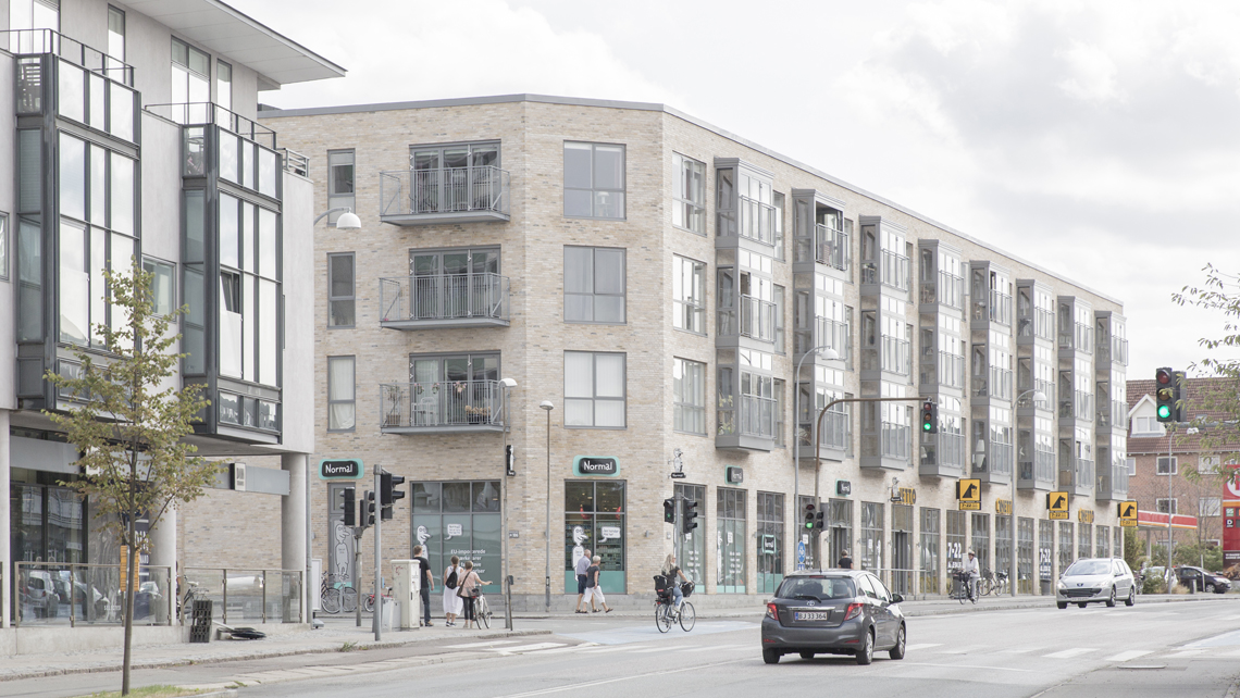 De karakteristiske karnap-altaner tilføjer en behagelig rytme til facaden og sikrer ligeledes lejlighederne masser af lys.