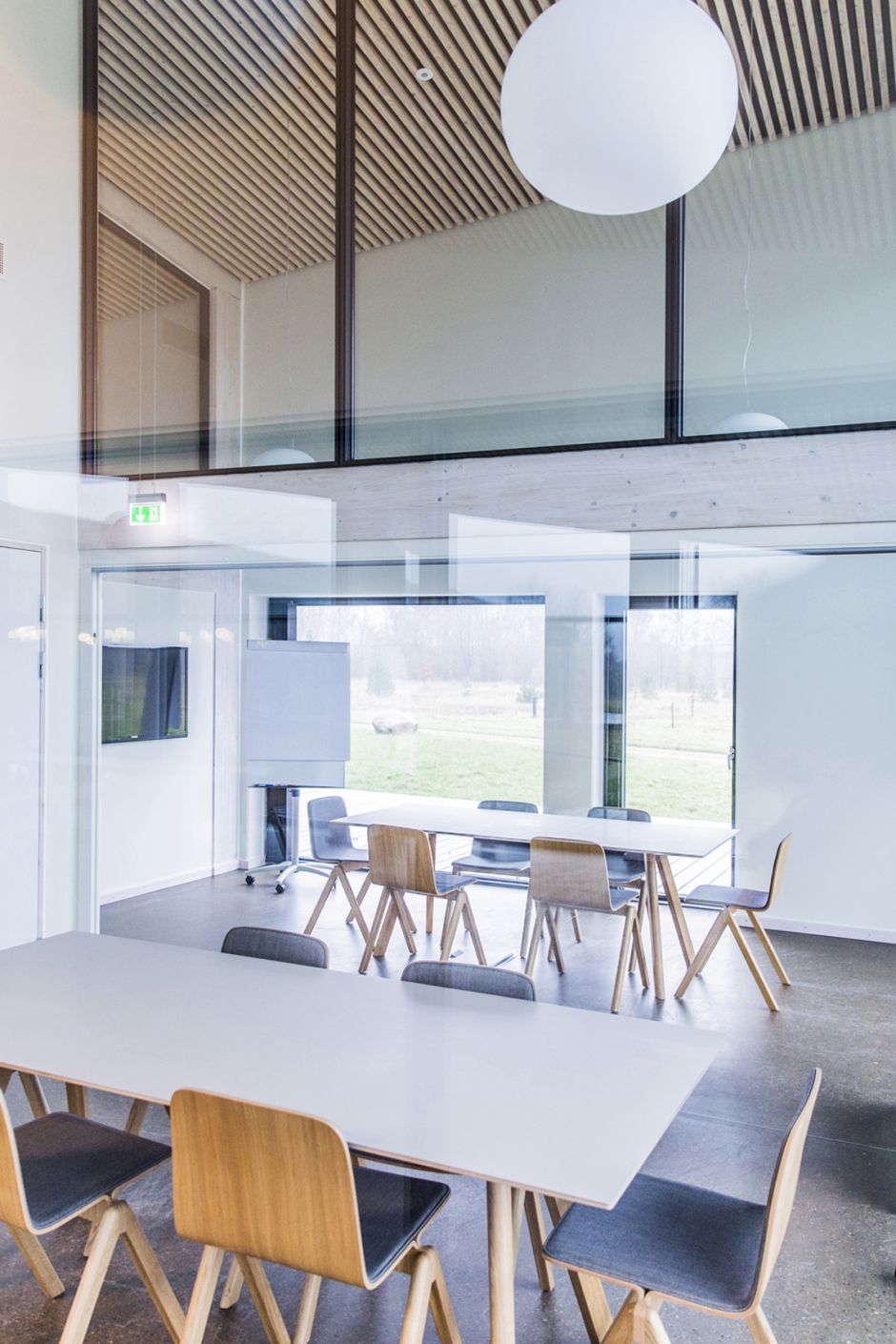 Bestseller wanted to create a campus for their Jack & Jones store managers and requested that it could be a mix between a five star resort and a simple hut. The building is situated on a scenic site on the moors of Jutland. Upon arrival, the building tugs into the landscape with its grass covered roof. The building and the roof later open up and show a dynamic roofscape towards south and views of the most scenic landscape. The building as a whole forms a sculptural piece of built landscape, which gives Jack & Jones a unique building for their staff.