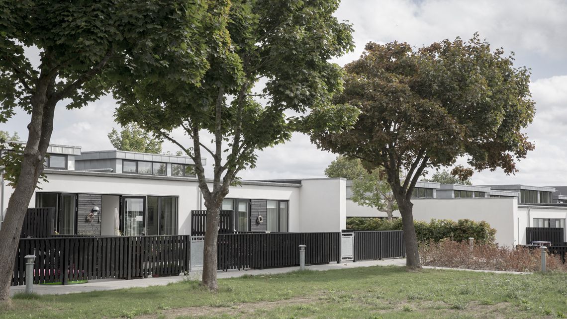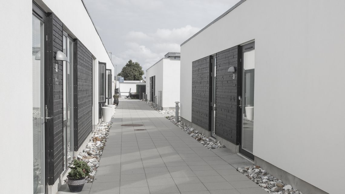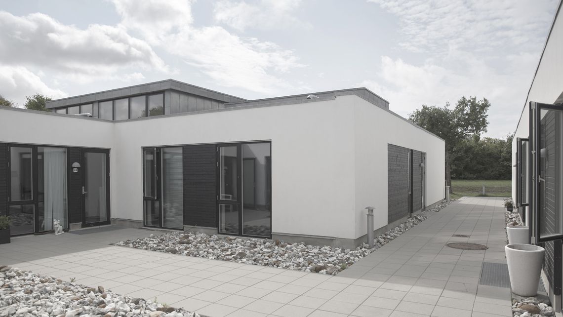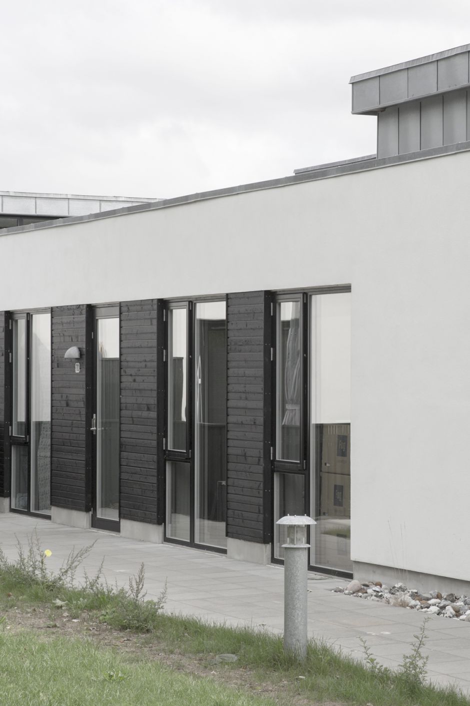 An old school in the city of Helsinge has been transformed into an attractive housing area. With respect for the architecture of the school, the area has been renovated and altered into serene groups of townhouses. The exterior design is clean and light and the same goes for the interior, where large floor to ceiling windows and customized bay windows in the roof secures lots of daylight. The houses are different in design and size and come with one or two floors.
