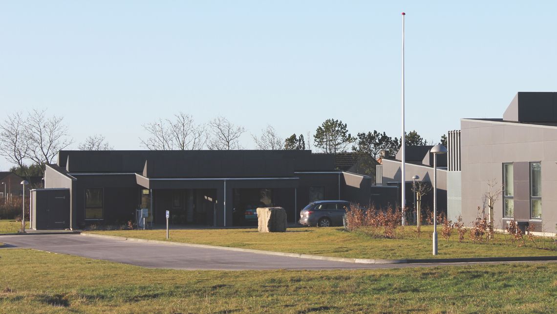 Blæsenborgparken is a project with low energy houses centred on a modest construction with gardens and views of the surrounding nature. With respect for the landscape the architecture discreetly grows from the ground and inclines against southwest to best suit the attached solar panels on the roofs.