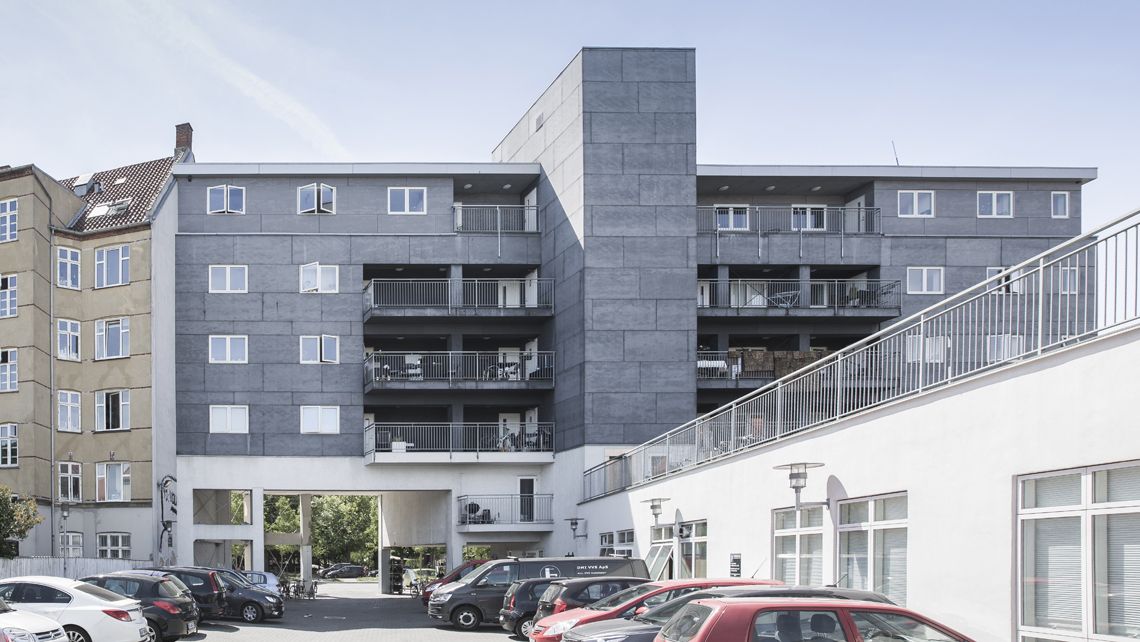 Wedged in between traditional Copenhagen blocks this project is located on Frederikssundsvej, which is a busy thoroughfare in Copenhagen. The building is light and airy with small balconies on the roadside and larger balconies facing the backyard, which highlights the use for living. This is further emphasized on the backside where the ground floor is extended perpendicular to the block, and a large recreational area on the roof terrace is thus created as an urban oasis in this busy and modern district.