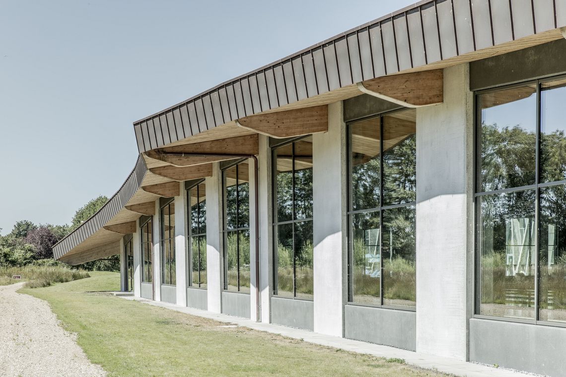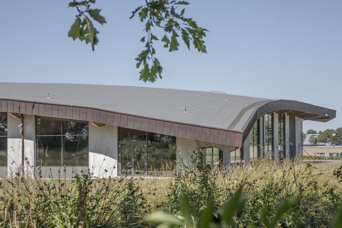 Den eksisterende bygning fra slut 1960’erne har en meget markant profil med elegante, bølgede tage som har været en inspirationskilde for designet af tilbygningen. Arkitekturen er enkel, men elegant og med et markeret, flydende tag, der skaber flere hyggelige og intime rum både inde og ude til mange forskellige aktiviteter.