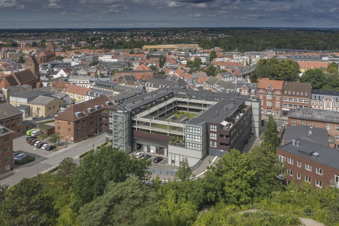 På en central placering i Næstveds handelscentrum skyder kobberhjørnet op. Projektet med andelslejligheder er bygget oven på en eksisterende butiksbygning og en parkeringsplads. Inspireret af de omkringliggende røde murstensbyggerier tilføjer Kobberhjørnet et moderne løft til området.