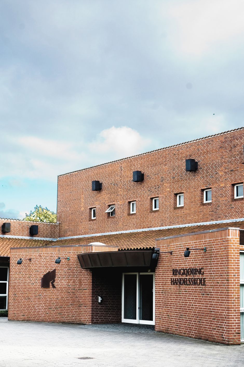 The vision with Ringkøbing Handelsskole (business high school) was to create an exciting architecture and making an end to long and boring hallways. Common areas and courtyards therefore disrupt the hallways. The red bricks and tile roof – a requirement from the local development plan – dominate the architecture together with the marking of primary rooms both inside and out. The sloping roof and sharp edges creates unique elements in the architecture and also make for high ceiled and airy rooms emphasizing the focus on learning and aiming high.